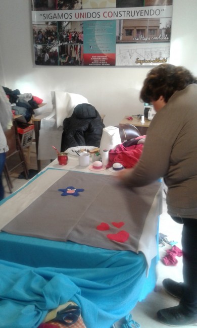 En esta oportunidad voluntarias que asistieron a las seis Jornadas de Producción Solidaria, nos permitieron en un trabajo conjunto, donde aprendimos a manejar la máquinas de coser y overlook, hacer más de 50 mantas para recién nacidos y bebés que serán distribuidas a quienes se encuentren internados en los Hospitales de General Madariaga, Pinamar y Villa Gesell, y el excedente entregado posteriormente a las autoridades de cada comunidad para que sean distribuidas por los recursos humanos que se desempeñan en las áreas sociales y están en contacto con quienes más lo necesitan...